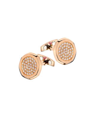 Запонки Audemars Piguet коллекции "Royal Oak" выполненные из розового золота 750 пробы с паве из 54 бриллиантов классической формы огранки общей массой 0,55 ct. Диаметр - 18 мм. Вес - 20,31 гр. В комплекте оригинальная коробка.