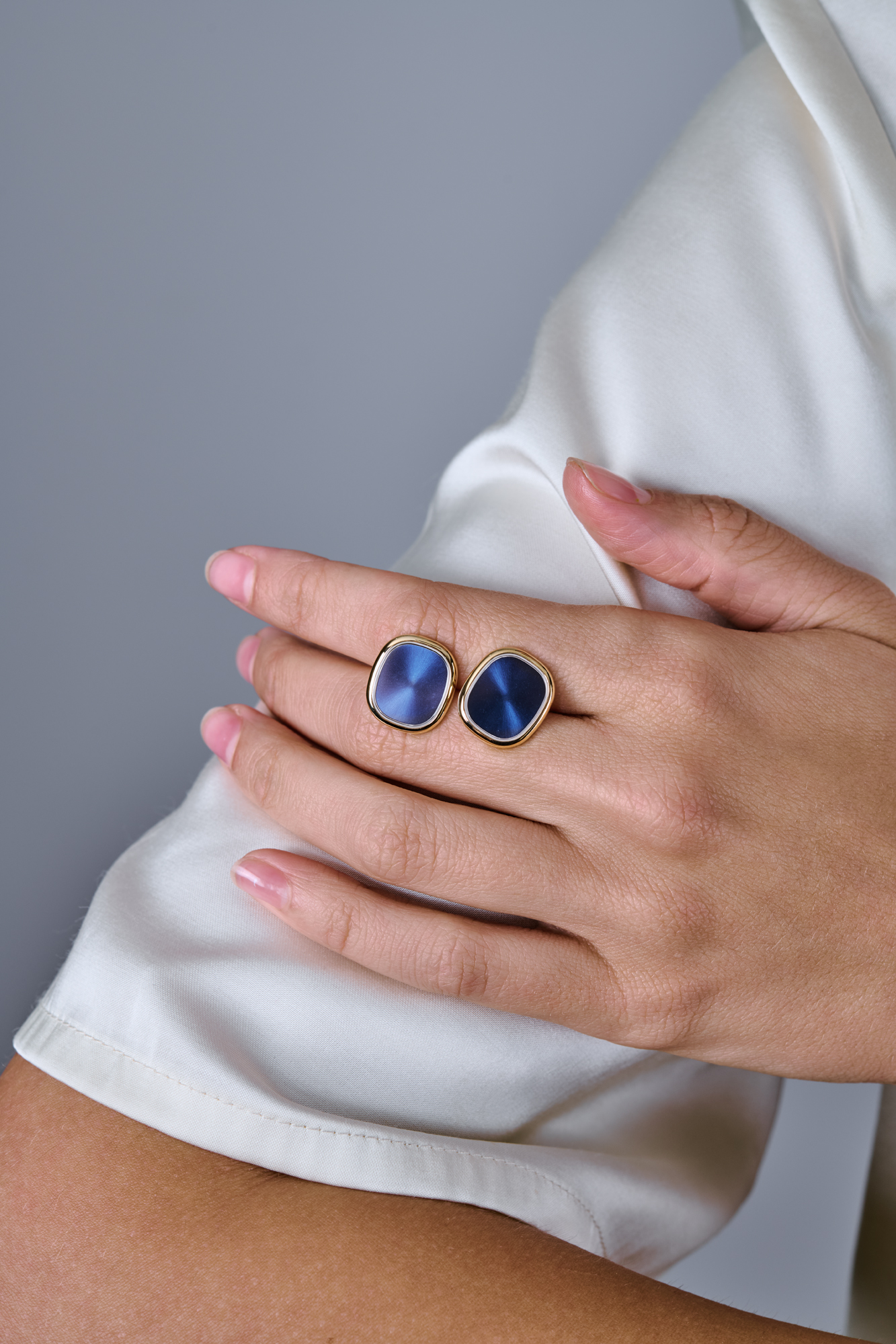 Запонки Patek Philippe коллекции "Golden Ellipse" выполненные из желтого золота 750 пробы с голубой эмалью. Размер 14,5 х 16,5 мм. Вес - 17,57 гр.