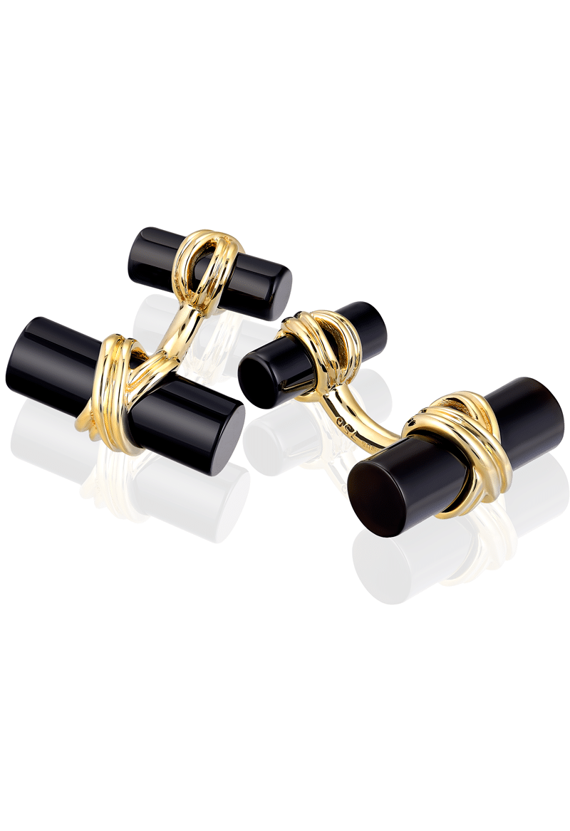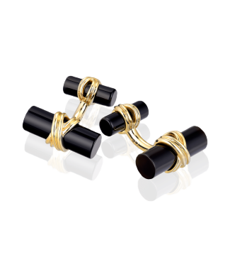 Запонки Tiffany & Сo выполненные из желтого золота 750 пробы с ониксом. Размер 20 х 10 мм. Вес изделия - 13,83 гр.