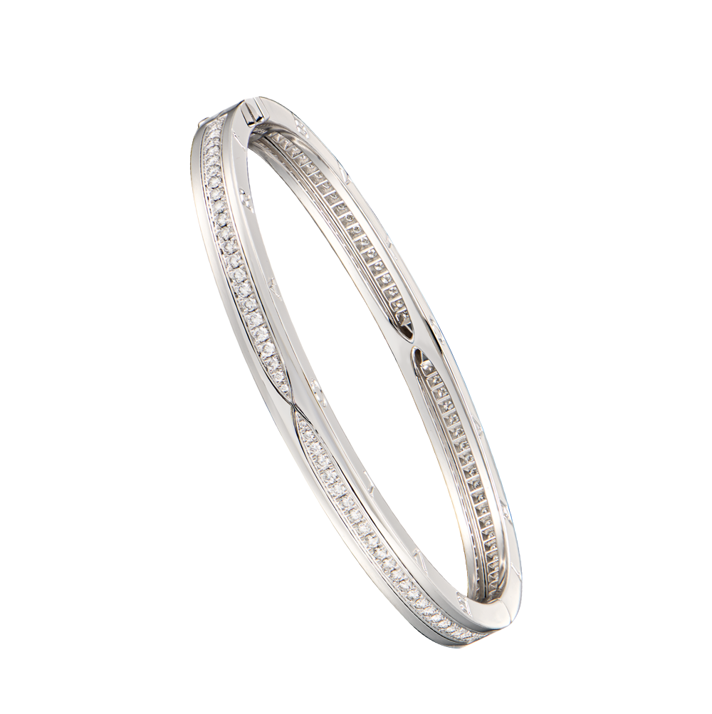 Браслет Bvlgari коллекции "B.Zero1" выполненный из белого золота 750 пробы с паве из бриллиантов классической формы огранки общей массой 1,41 ct. Размер M (17 cм). Вес - 31,81 гр. Полный комплект.