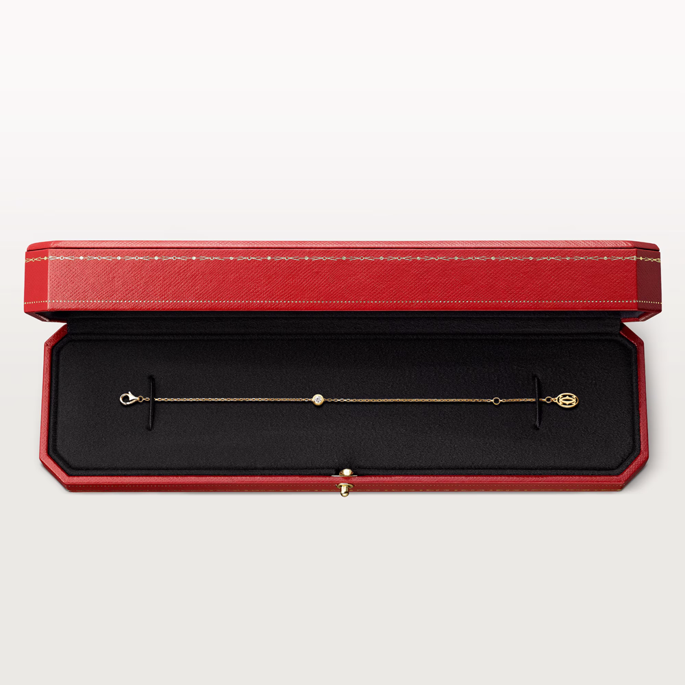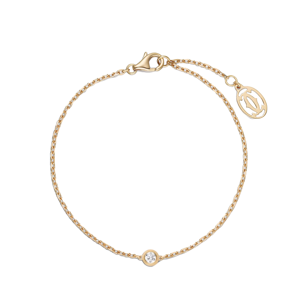 Браслет Cartier коллекции Cartier d'Amour выполненный из желтого золота 750 пробы с 1 бриллиантом классической формы огранки общей массой 0,09 ct. Диаметр узора: 4,50 мм. Длина: от 165 до 185 мм. Вес - 2,13 гр.