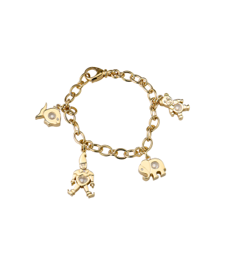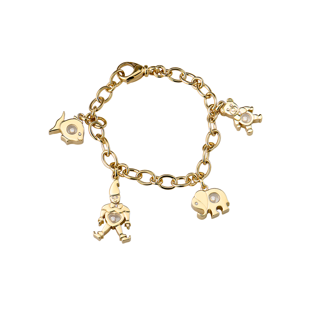 Браслет Chopard коллекции "Happy Diamonds Charms" выполненный из желтого золота 750 пробы с 4 плавающими бриллиантами массой 0,22 ct., а также 8 бриллиантами классической формы огранки массой 0,06 ct.. Длина браслета - 18 см. Вес изделия - 48,83 гр.
