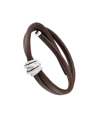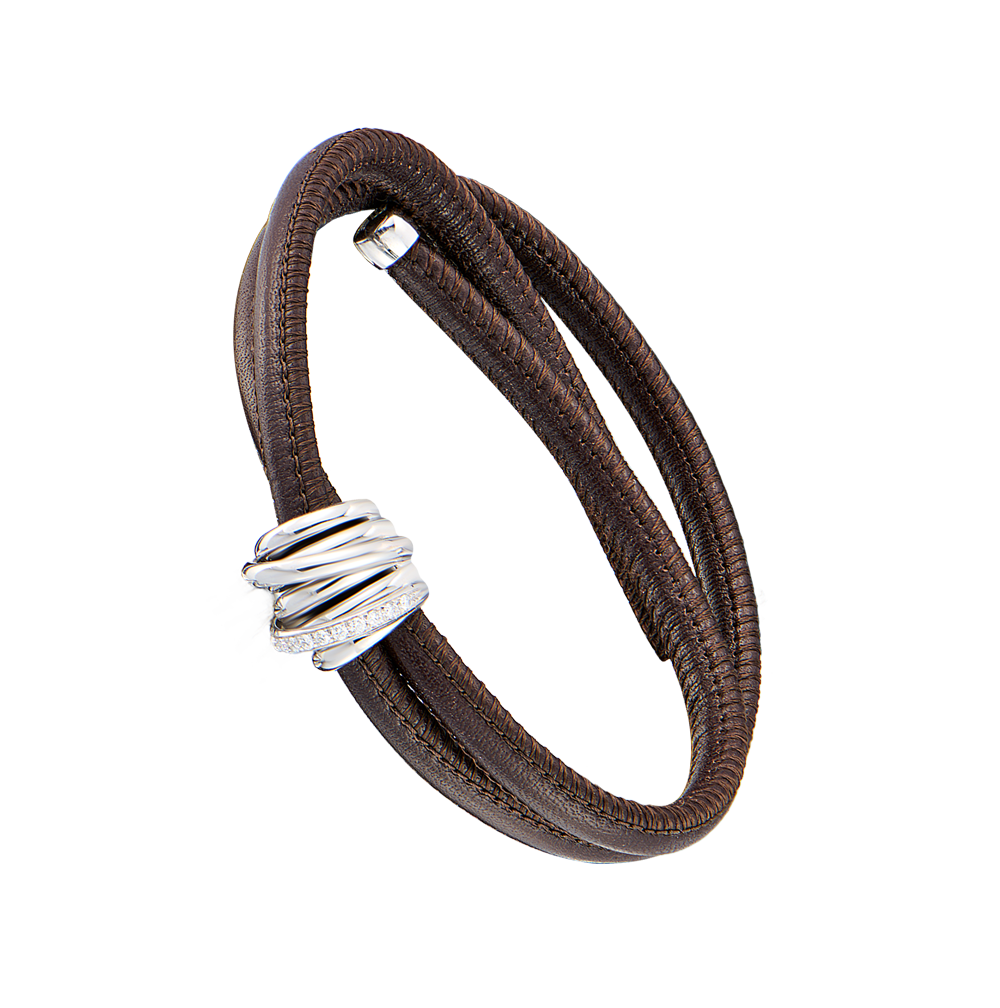 Браслет De Grisogono коллекции "Allegra" выполненный из белого золота 750 пробы и и кожи с россыпью бриллиантов классической формы огранки. Общий вес - 13,18 гр.