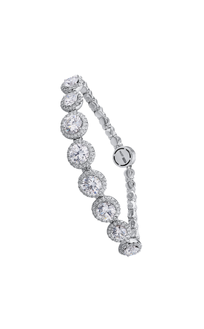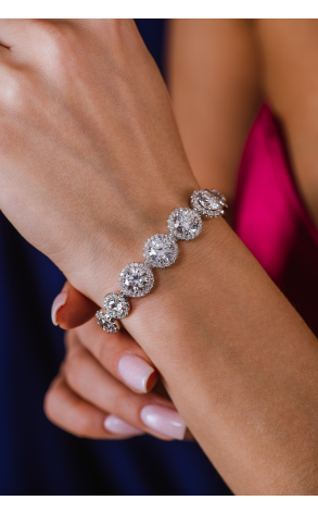 Каждый бриллиант окружен паве из бриллиантов классической формы огранки. Длина браслета 18,0 см. Вес - 41,53 гр.