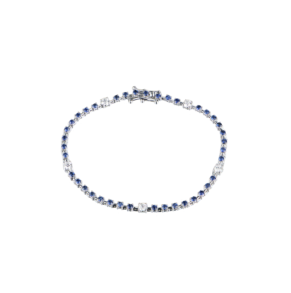 Браслет Gianni Lazzaro выполненный из белого золота 750 пробы с 5 бриллиантами классической формы огранки "Кр-57" общей массой 0,5 ct. 39 природными сапфирами формы огранки "Круг" общей массой 1,13 ct. Размер 16,5 см. Вес - 4,98 гр.