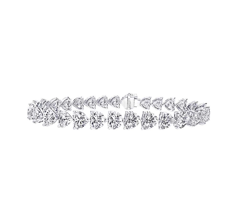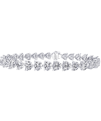 Браслет Graff выполненный из платины 950 пробы и белого золота 750 пробы с 29 бриллиантами формы огранки "Сердце" общей массой 21,81 ct. Fine White/VS+ и 4 бриллиантами классической формы огранки массой 0,02 ct. Ширина кольца - 6,4 мм. Размер - 17,0 см. Вес - 21,50 гр. Полный комплект.