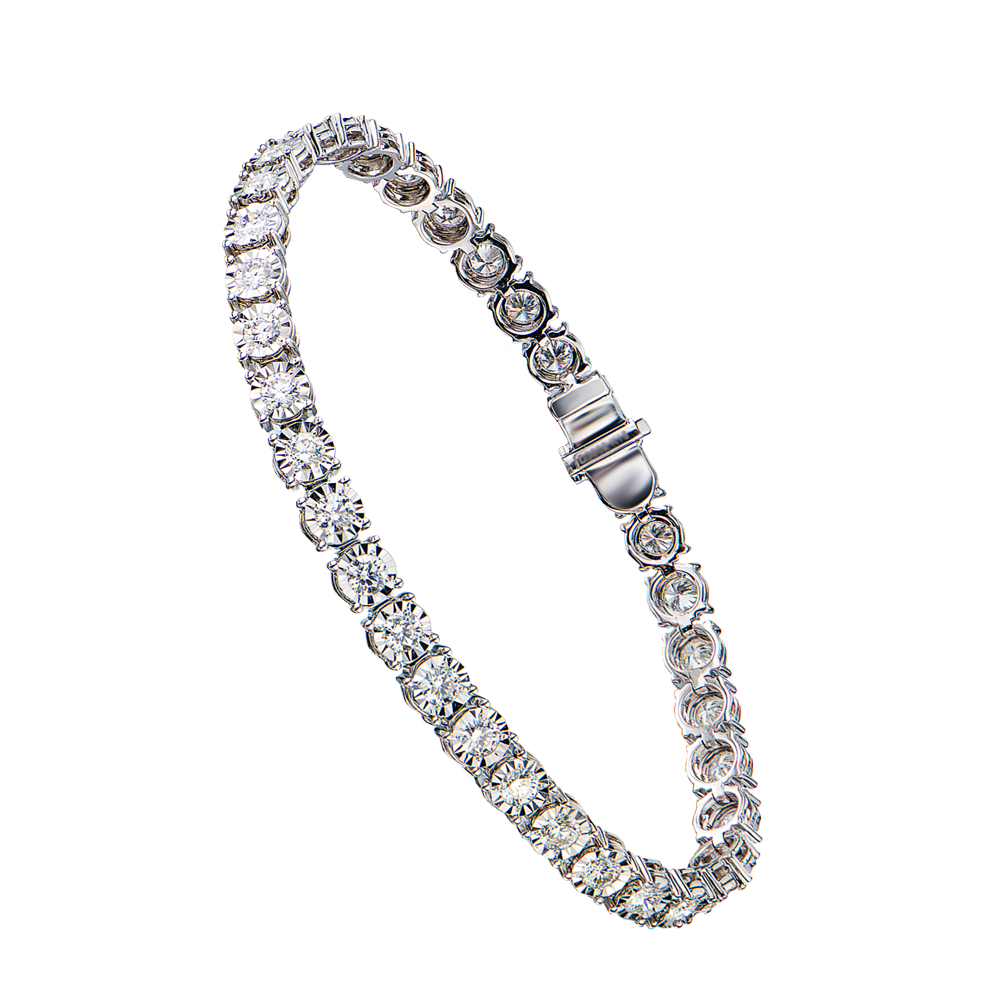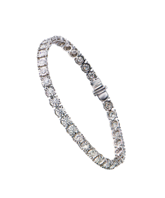 Браслет, выполненный из белого золота 750 пробы с бриллиантами классической огранки. 35 бриллиантов классической формы огранки общей массой 3,80 ct. Цвет 3 (G-H). Чистота 4-5 (SI1-SI2). Длина браслета - 18,0 см. Вес - 15,71 гр. В комплекте прилагается экспертное заключение Геммологического центра МГУ.