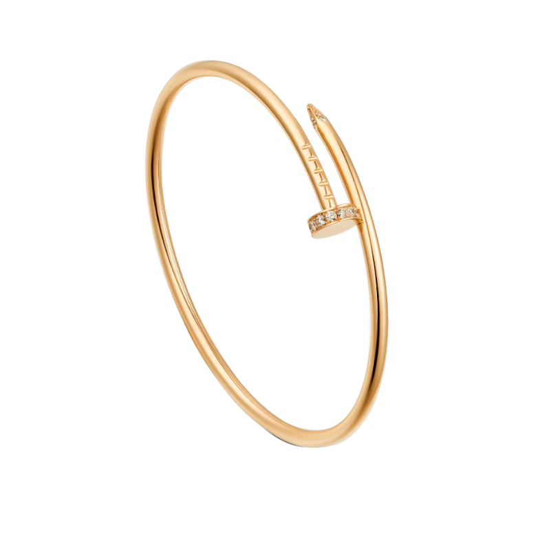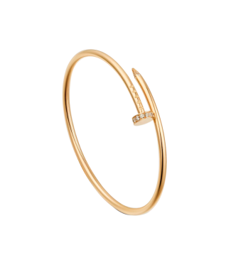 Браслет Cartier коллекции "Juste un Clou", маленькая модель, выполненная из желтого золота 750 пробы с 20 бриллиантами классической огранки общим весом 0,18 ct. Размер - 16,0. Вес - 8,01 гр.