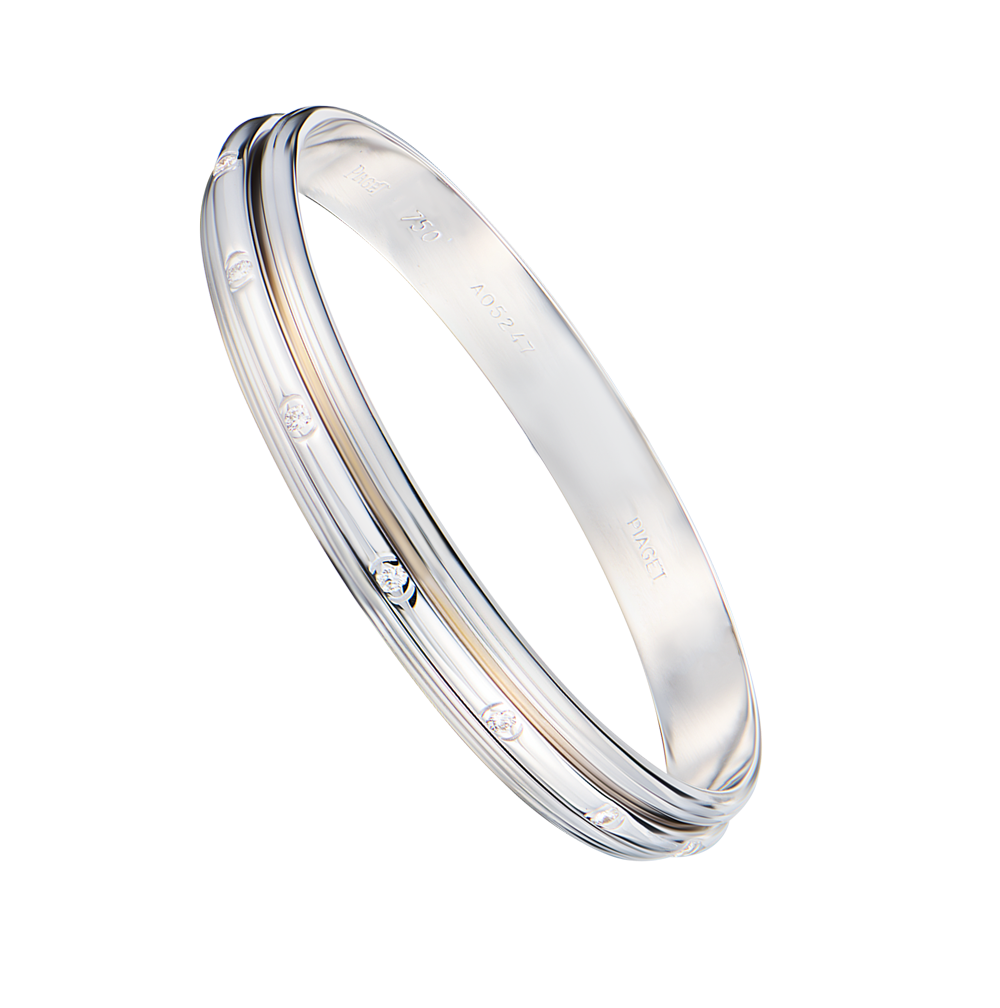 Браслет выполненный в стиле Piaget коллекции "Posession" из белого золота 750 пробы с 15 бриллиантами классической формы огранки массой 0,45 ct (F/VS). Диаметр браслета - 20,0 см. Вес - 47,83 гр.