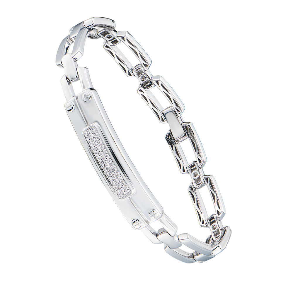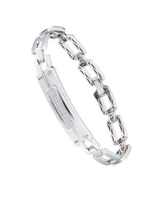 Браслет из белого золота 750 пробы с 45 бриллиантами классической формы огранки общей массой 0,25 ct. Ширина браслета - 10 мм. Длина - 18,0 см. Вес - 29,76 гр.