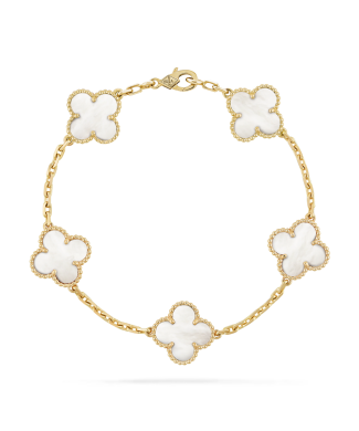 Браслет Van Cleef & Arpels коллекции "Vintage Alhambra" 5 мотивов, выполненный из желтого золота 750 пробы с вставками из перламутра. Длина 18,0 см. Полный комплект. Новый 2025 год.
