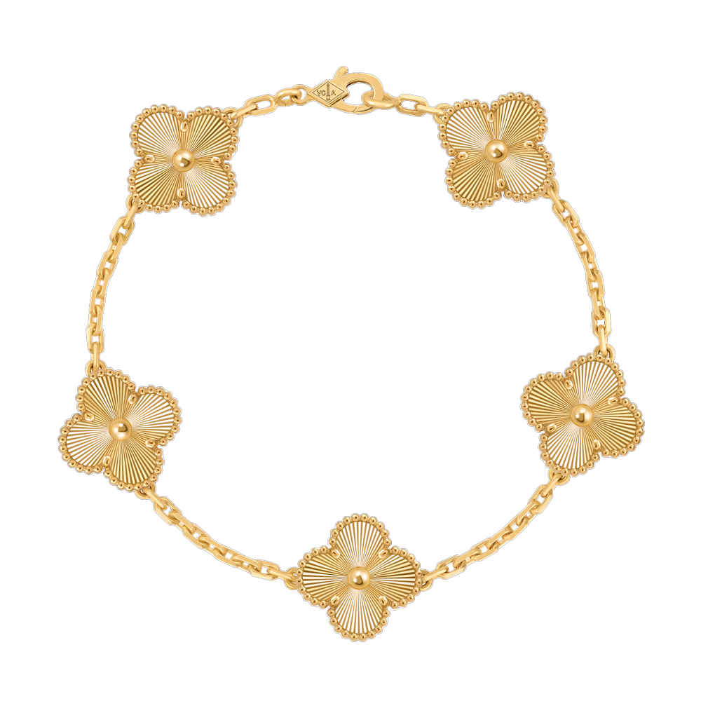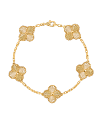 Браслет Van Cleef & Arpels коллекции "Vintage Alhambra" выполненный из желтого золота 750 пробы с 5 мотивами. Длина 19,0 см. Полный комплект. Вес - 18,30 гр. Абсолютно новый.