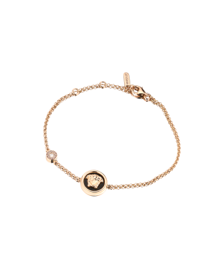 Браслет Versace коллекции "Medusa" выполнен из розового золота 750 пробы с 1 бриллиантом классической формы огранки массой 0,45 ct. Диаметр круга 11 мм. Размер - 16 - 18 см. Вес - 4,34 гр.