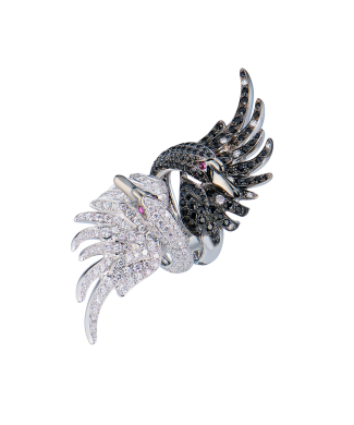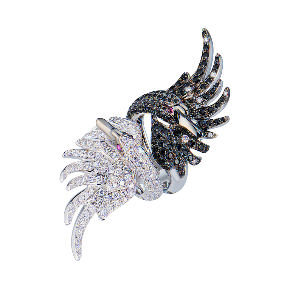 Пара колец Boucheron коллекции "Cypris, the swan ring Diamonds" выполненные из белого золота 750 пробы.