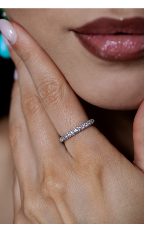 Кольцо Boucheron коллекции "Epure" выполненное из белого золота 750 пробы с 144 бриллиантами классической формы огранки общей массой 1,00 ct. Ширина 2,5 мм. Размер - 16,5 (52). Вес - 2,53 гр.