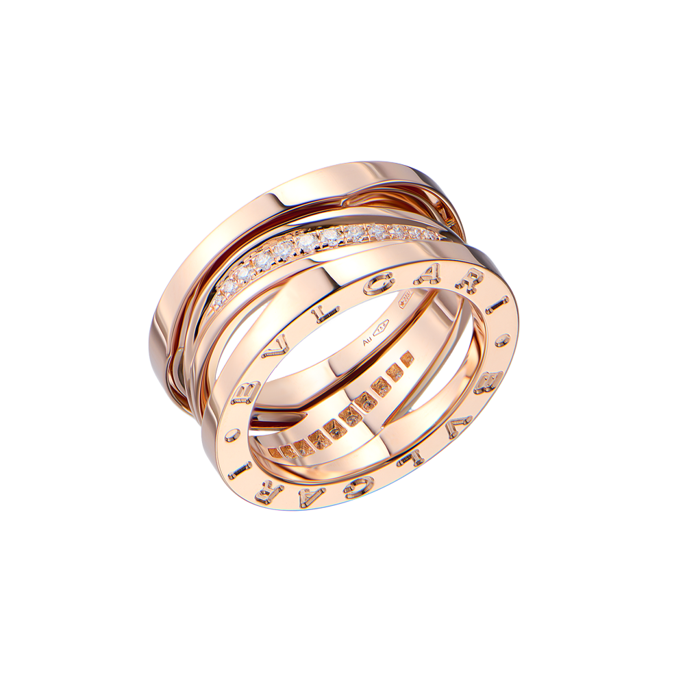 Кольцо Bvlgari коллекции "B.Zero1 Design Legend" 3-х полосное, выполненное из розового золота 750 пробы с 28 бриллиантами классической формы огранки общей массой 0,20 ct. Ширина кольца - 9 мм. Размер - 16,5 (52) . Вес - 9,13 гр. Полный комплект.