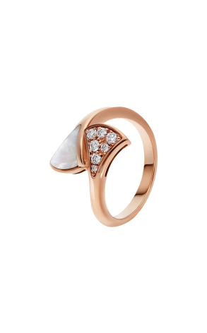 Кольцо Bvlgari коллекции "Diva's Dream" выполненный из розового золота 750 пробы с перламутром и бриллиантовым паве массой 0,08 ct. Размер - 16,5 (52)/ 16,75 (53). Вес - 3,77 / 3,83 гр. Полный комплект.