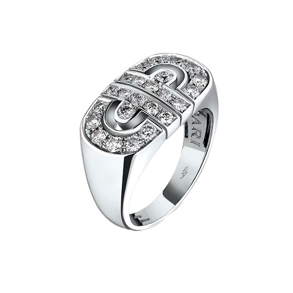 Кольцо Bvlgari коллекции "Parentesi" выполненное из белого золота 750 пробы с 24 бриллиантами классической формы огранки общей массой 0,70 ct. Вес - 8,16 гр. Размер - 17.0 (54).