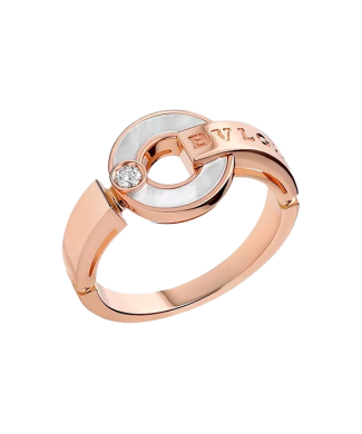 Кольцо Bvlgari из коллекции "Bvlgari-Bvlgari" выполнено из розового золота 750 пробы с вставкой из перламутра и бриллианта классической огранки 0,04 карат. Размер кольца 16,0 (50). Вес- 5,26 гр.