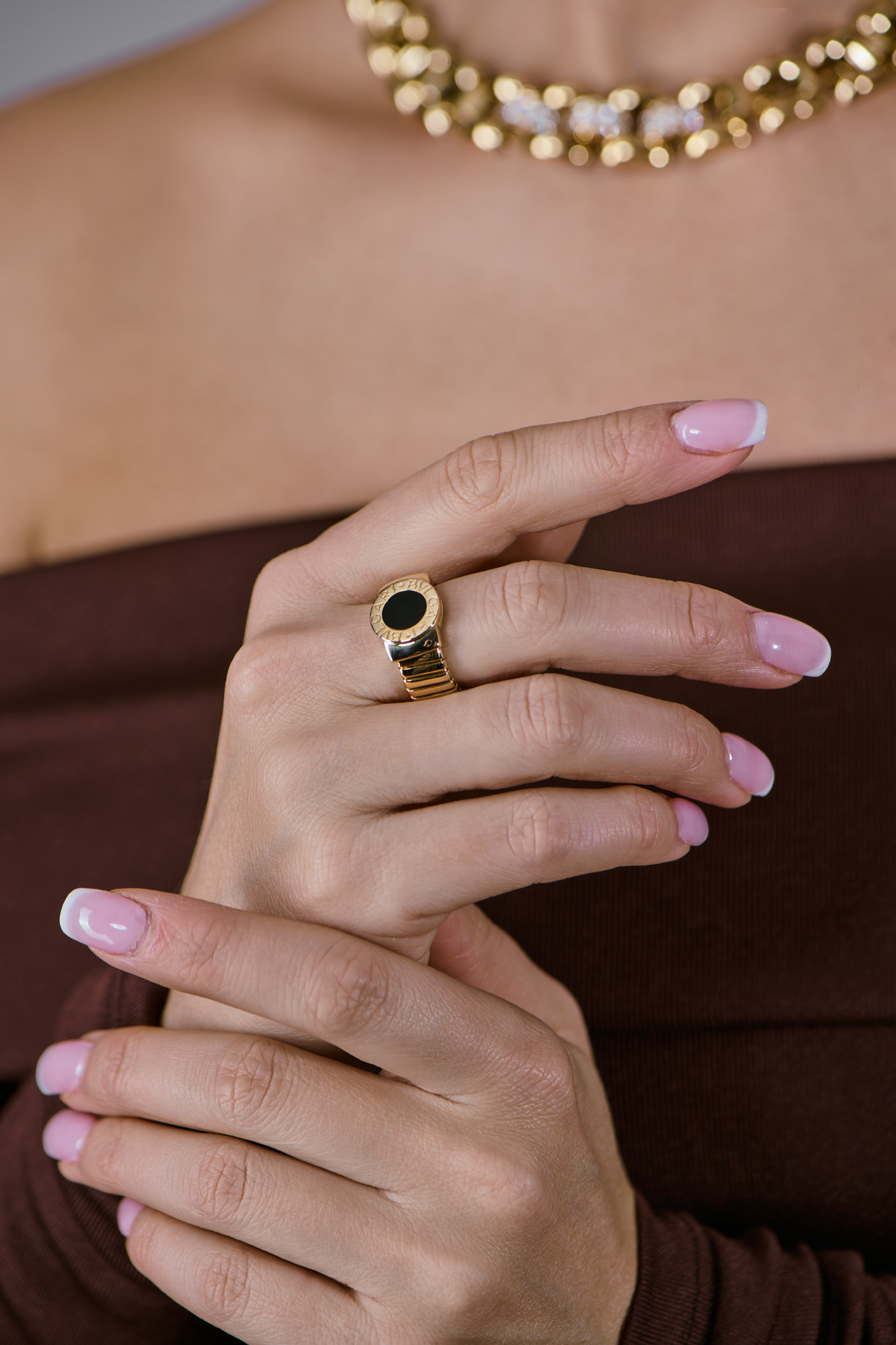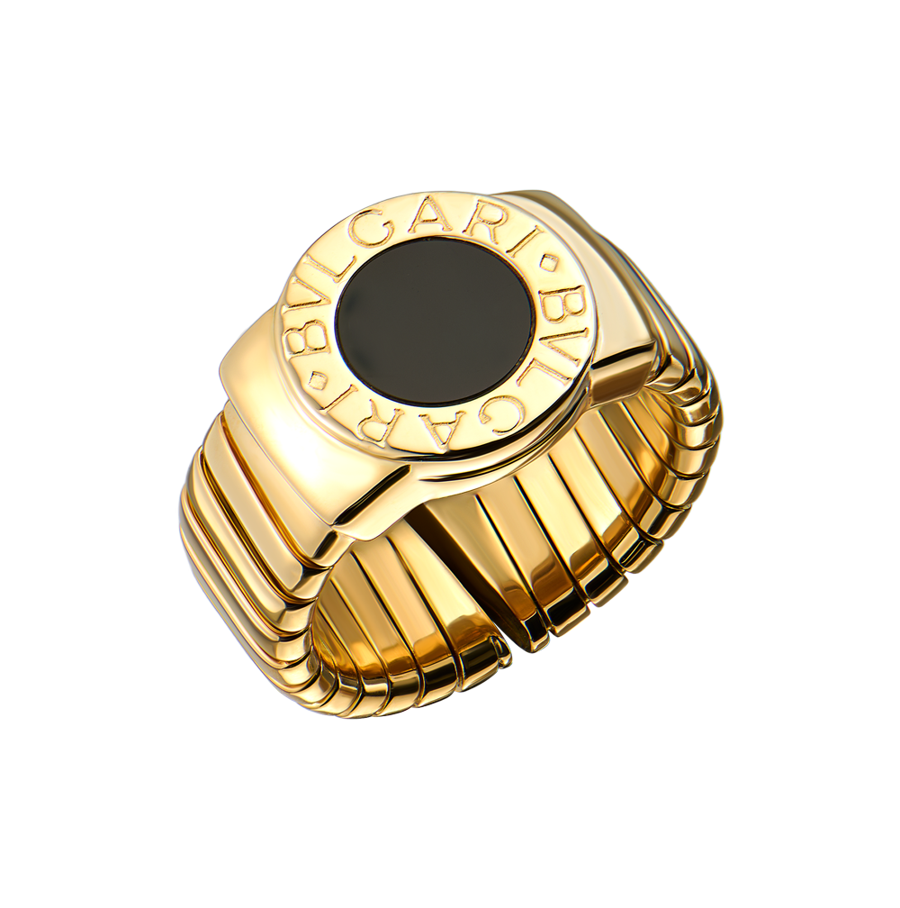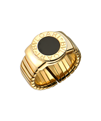 Открытое кольцо Bvlgari коллекции "Tubogas" выполненное из желтого золота 750 пробы с вставкой из оникса. Диаметр - 12,8 мм. Размер кольца - 17,0 (54). Вес - 16,17 гр.