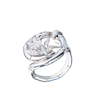 Кольцо Carrera y Carrera коллекции "Bambu" выполненное из белого золота 750 пробы с 29 бриллиантами классической формы огранки массой 0,24 ct. Диаметр кольца: 20 мм. Размер кольца - 16,5 (52). Вес - 8,84 гр.