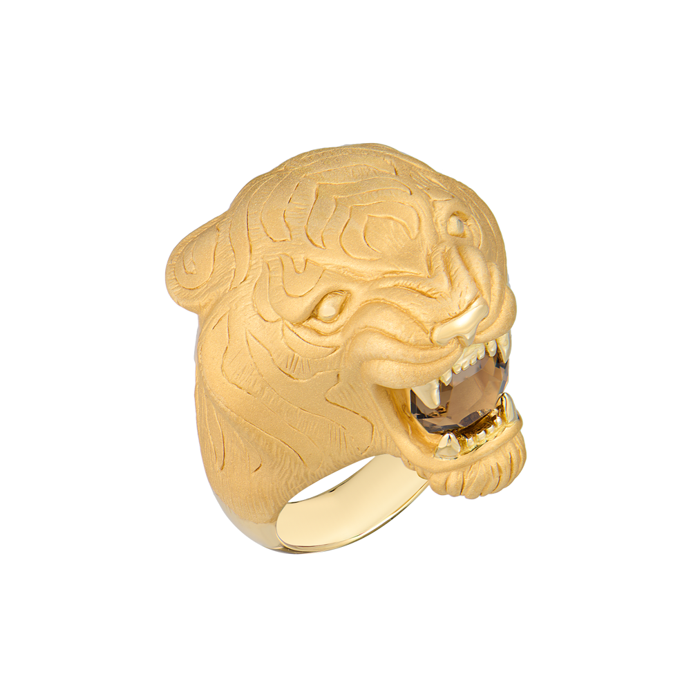 Кольцо Carrera y Carrera коллекции "Bestario" выполненное из желтого золота 750 пробы с дымчатым кварцем массой 1,29 ct. Размер кольца - 17,5 (54). Общие размеры 35 х 25 х 22 мм. Вес - 25,44 гр.