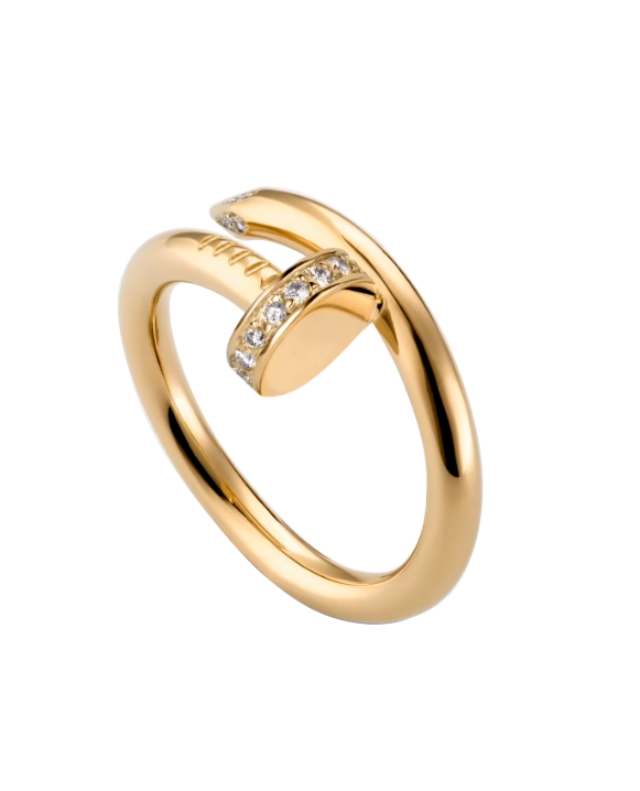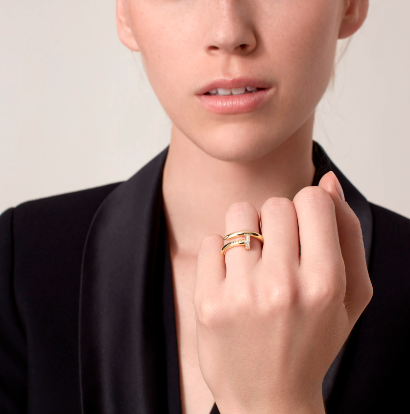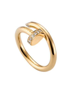 Кольцо Cartier коллекции "Juste Un Clou" выполненное из желтого золота 750 пробы с 22 бриллиантами классической формы огранки общей массой 0,13 ct., широкая модель 2,6 мм. Размер кольца - 17,0 (54). Вес - 7,44 гр. Полный комплект! 2023 г.