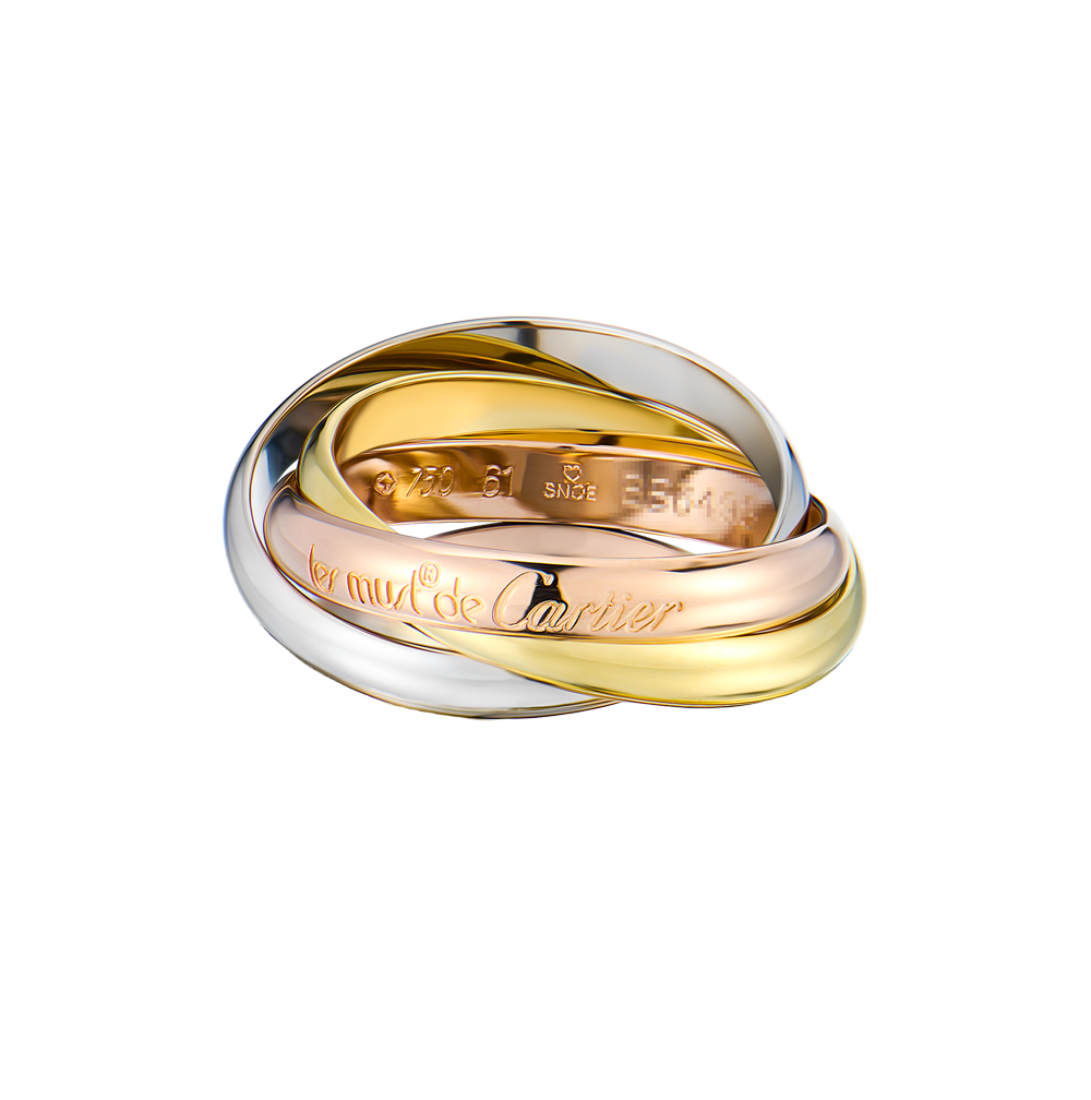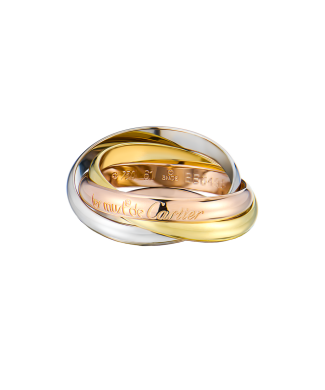 Кольцо Trinity, разработанное Луи Картье в 1924 году, является фирменным дизайном Дома Cartier. Три переплетенные полосы из розового, желтого и белого золота символизируют любовь, верность и дружбу. Кольцо вдохновило на создание полной коллекции Trinity, которая является вечным свидетельством самых памятных любовных историй в жизни.
