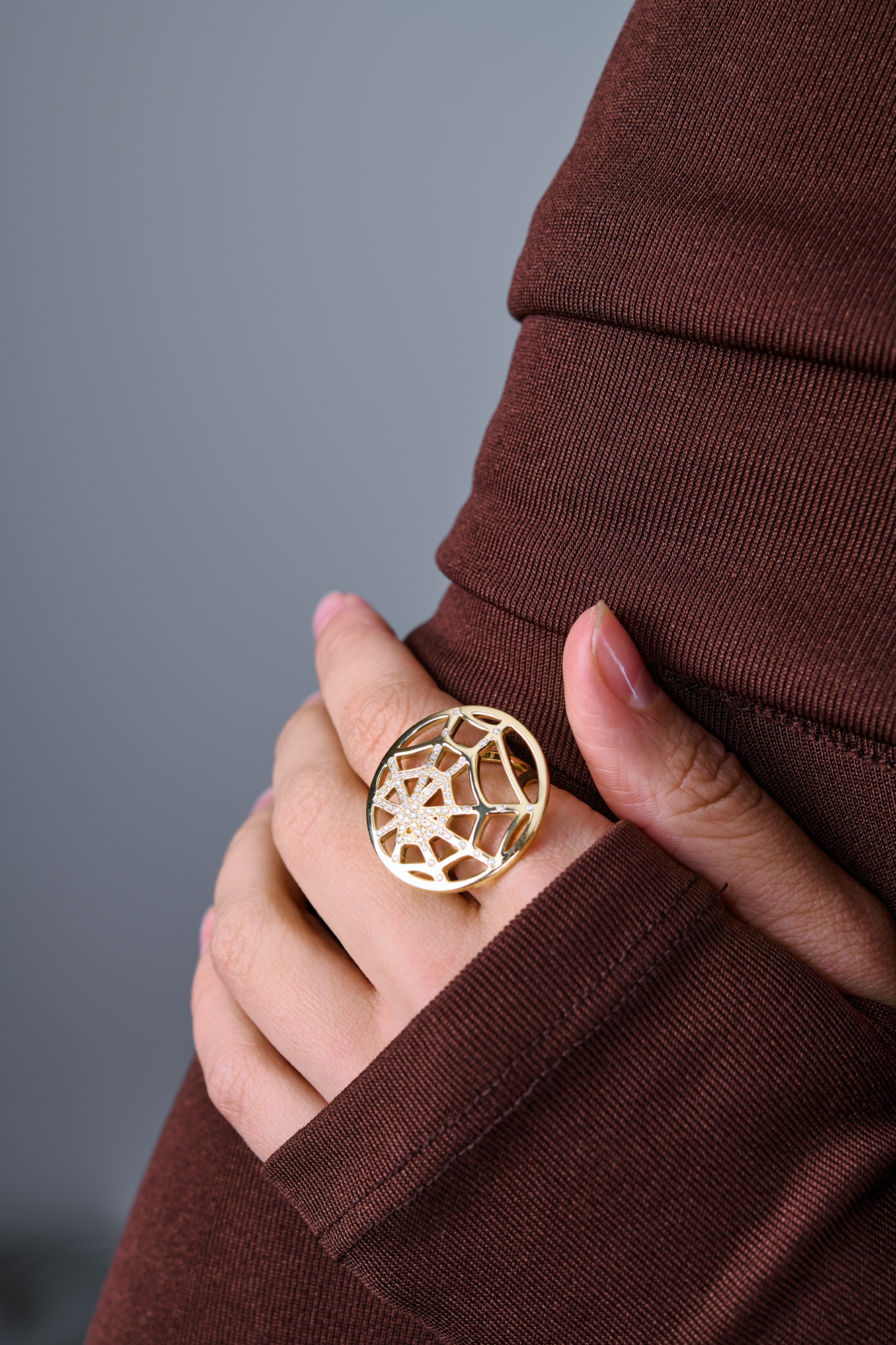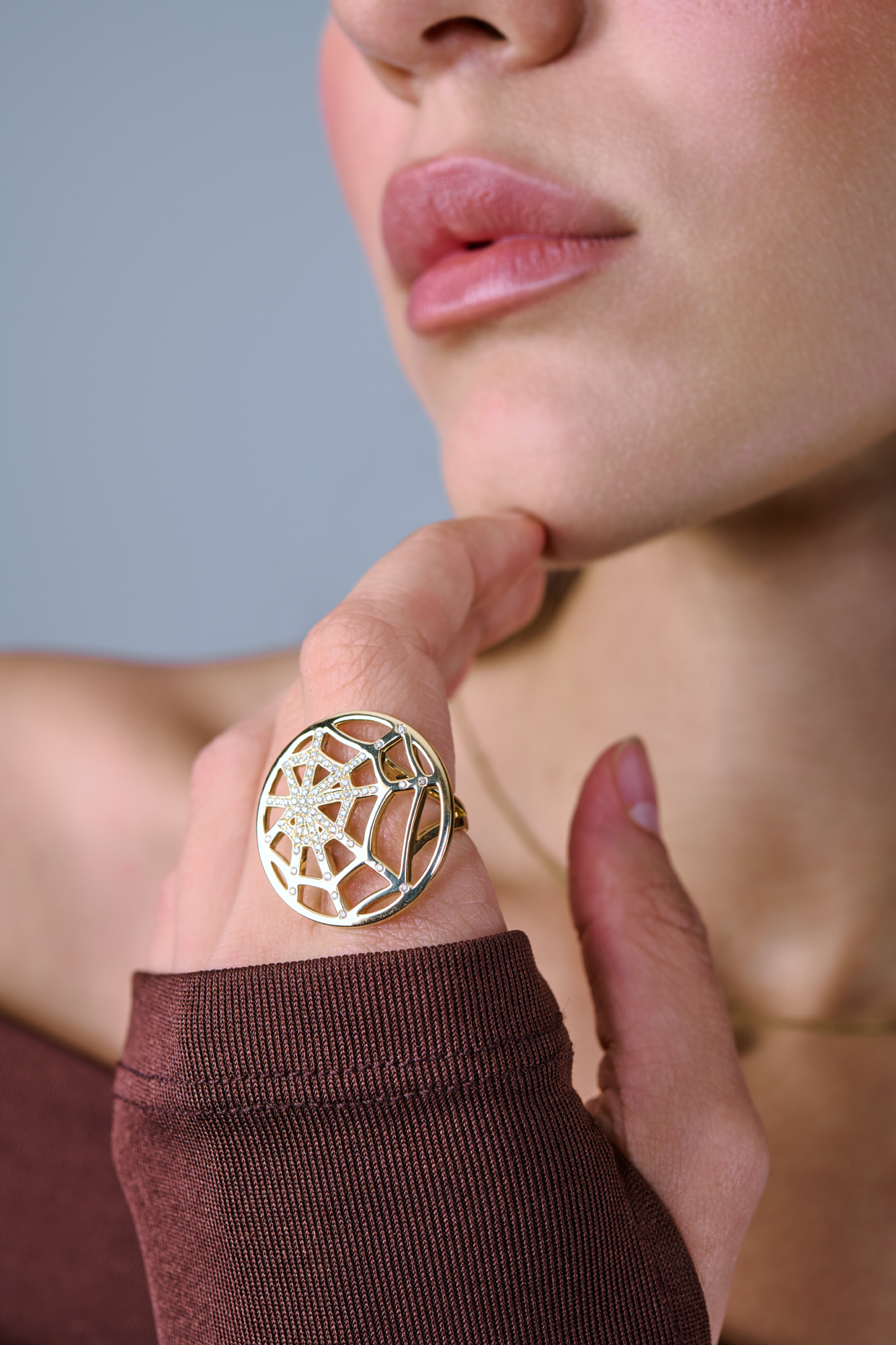 Кольцо Chaumet коллекции "Attrape Moi Catch Me Spider" выполненное из желтого золота 750 пробы с паве из бриллиантов классической формы огранки общей массой 0,75 ct. Диаметр круга - 28 мм. Вес - 12,41 гр.