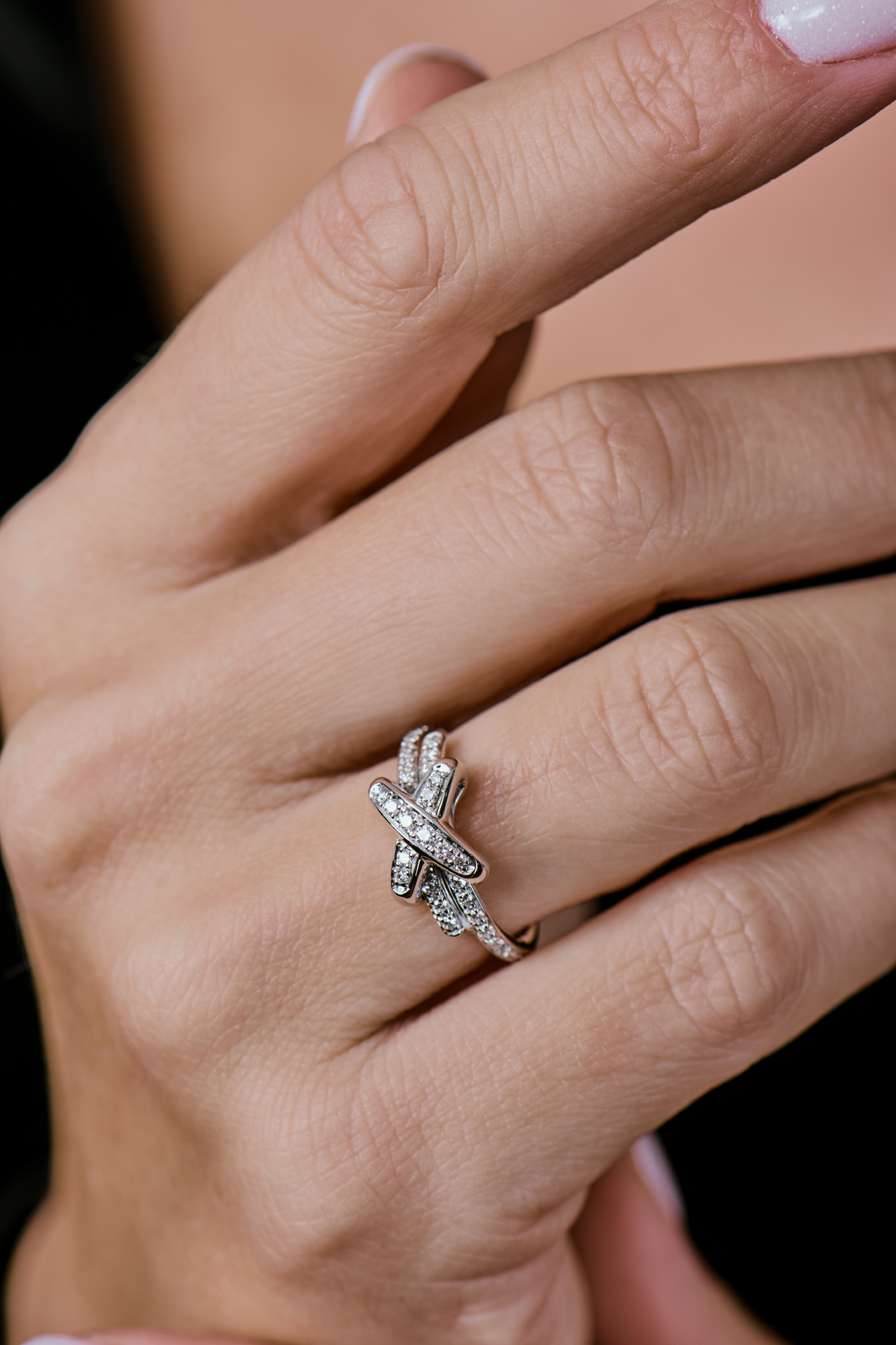 Кольцо Chaumet коллекции "Jeux de Liens" выполненное из белого золота 750 пробы с паве из 38 бриллиантов классической формы огранки общей массой 0,34 ct. Размер 16,25 (51). Вес - 5,45 гр.
