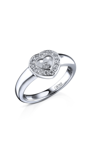 Кольцо Choaprd коллекции "Happy Diamonds Heart" выполненное из белого золота 750 пробы с 15 бриллиантами классической огранки. 14 бриллиантов массой - 0,24 ct. 1 плавающий бриллиант - 0,05 ct. Размер кольца - 17,0 (54). Вес - 7,48 гр. Полный комплект!