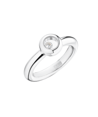 Кольцо Chopard коллекции "Happy Diamonds Miss Happy" выполненные из белого золота 750 пробы с 1 плавающим бриллиантом классической формы огранки массой 0,05 сt. Размер 16,25 (51). Вес - 7,68 гр.