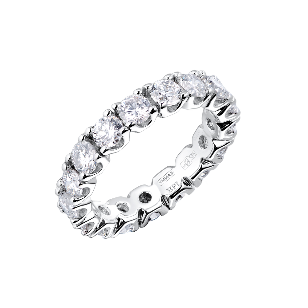 Кольцо EPL "Дорожка" выполненное из белого золота 585 пробы с 17 бриллиантами классической формы огранки общей массой 2,70 ct. Цвет - 3 (G-H). Чистота 6 (SI2-I1). Ширина - 3.6 мм. Размер кольца - 16,25 (51). Вес - 4,16 гр. В комплекте прилагается сертификат экспертное заключение Геммологического центра МГУ.