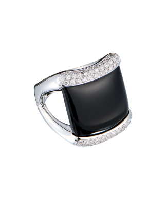 Кольцо Gavello выполнено из белого золота 750 пробы с бриллиантами и ониксом. Бриллианты классической формы огранки общей массой 0,70 ct. Цвет G-H. Чистота VVS. Диаметр 22 х 20 мм. Размер - 16,75 (53). Вес - 20,19 гр. В комплекте оригинальные документы.