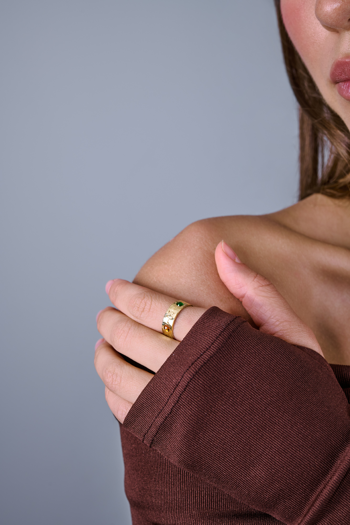 Кольцо Gucci коллекции "Icon" выполненное кованой отделкой из желтого золота 750 пробы с разноцветным кварцем. Размер - 16,75 (53). Вес - 4,75 гр.