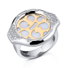 Кольцо Korloff выполненное из белого и розового золота 750 пробы с вставкой из перламутра и бриллиантов классической формы огранки. Размер кольца - 17,0 (53). Вес - 10,94 гр.