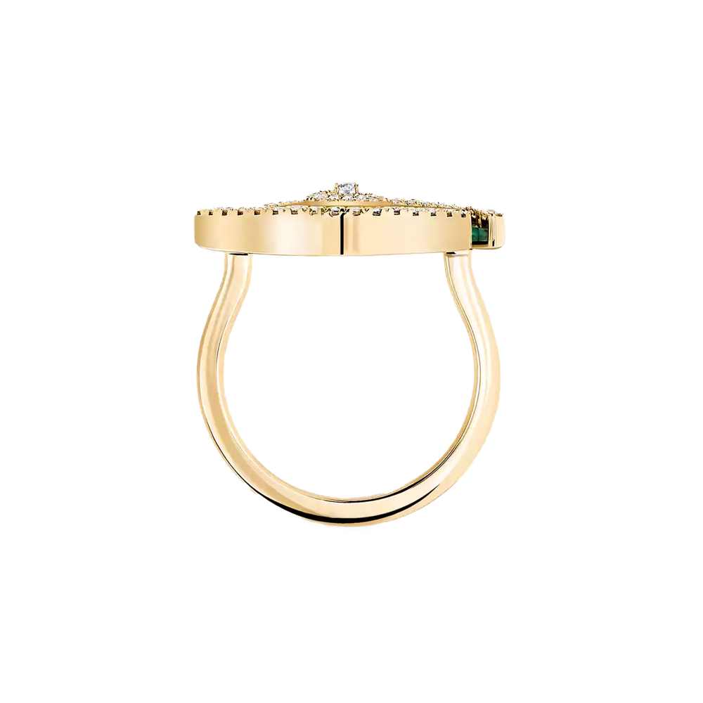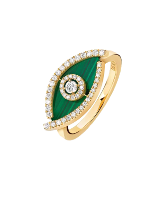 Кольцо Messika коллекции "Lucky Eye" выполненное из желтого золота 750 пробы с вставкой из малахита и бриллиантов классической формы огранки общей массой 0,26 ct. Размер кольца - 16,75 (53). Вес - 4,73 гр. Полный комплект.