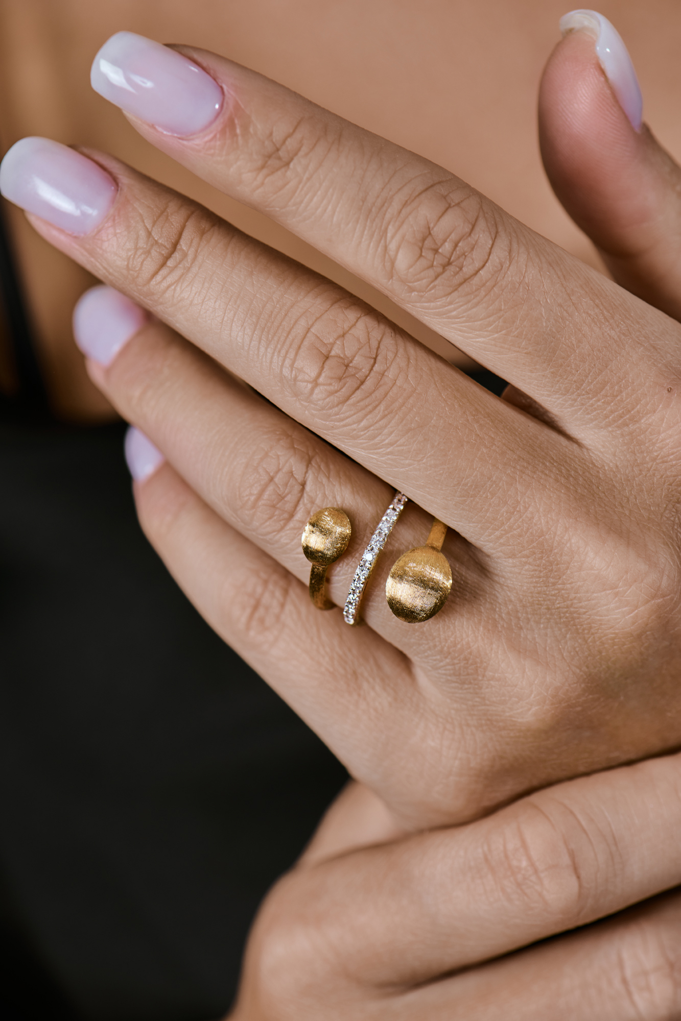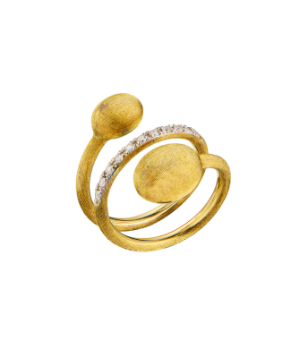 Кольцо Nanis коллекции "Dancing in The Rain Elite" в два витка выполненное из желтого золота 750 пробы с 11 бриллиантами классической формы огранки общей массой 0,15 ct.. Размер кольца - 16,25 (51). Вес - 3,81 гр.