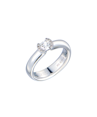 Кольцо выполненное из белого золота 750 пробы с бриллиантами. Центральный бриллиант классической формы огранки "Кр-57" массой 0,35 ct. Цвет - E. Чистота - VS2. Паве из 10 бриллиантов классической формы огранки в обрамлении общей массой 0,04 ct. Размер - 17,0 (54). Вес - 8,55 гр. В комплекте экспертное заключение Геммологического центра МГУ. Размер кольца можно изменить по Вашему желанию бесплатно.