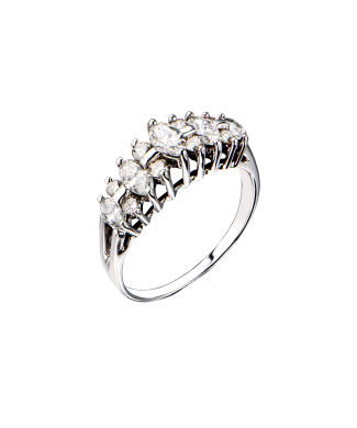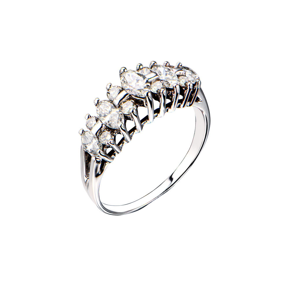 Кольцо из белого золота 750 пробы c бриллиантами. 8 бриллиантов классической формы огранки массой 0,235 ct. 5 бриллиантов формы огранки "Маркиз" общей массой 0,635 ct. Цвет G-H. Чистота VS1-SI2. Размер - 17,0 (54). Вес - 2,99 гр.