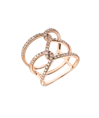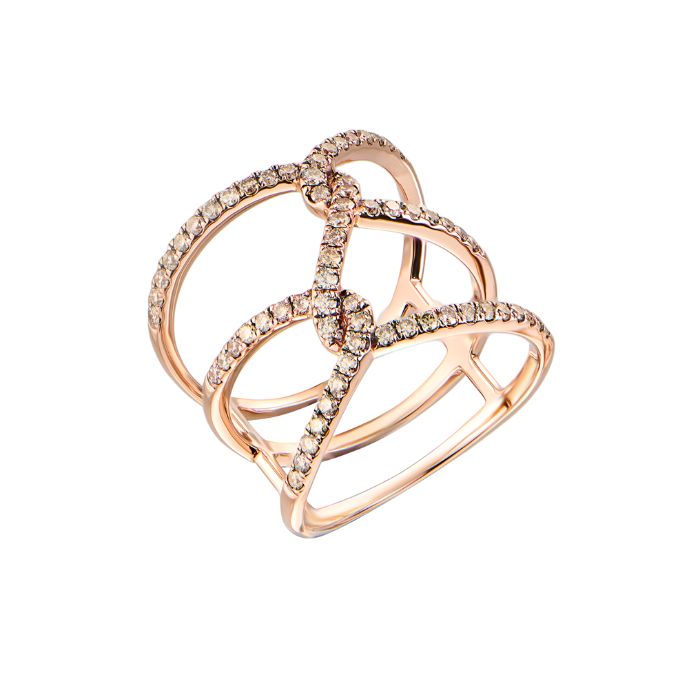 Кольцо выполненное из розового золота 750 пробы с бриллиантами классической формы огранки общей массой 0,52 ct. Ширина 18,5 мм. Размер 18,0 (57). Вес - 5,19 гр.