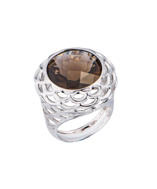 Кольцо, выполненное из белого золота 585 пробы с вставкой из дымчатого кварца. Диаметр кольца - 23,9 мм. Размер кольца - 17,5 (54). Вес - 8,33 гр.