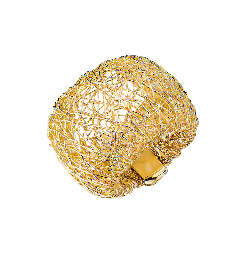 Кольцо Orlando Orlandini выполненное вручную из желтого золота 585 пробы из сложной сетки состоящей из множества проволок. Размер кольца - 16,75 (53). Вес - 8,06 гр.