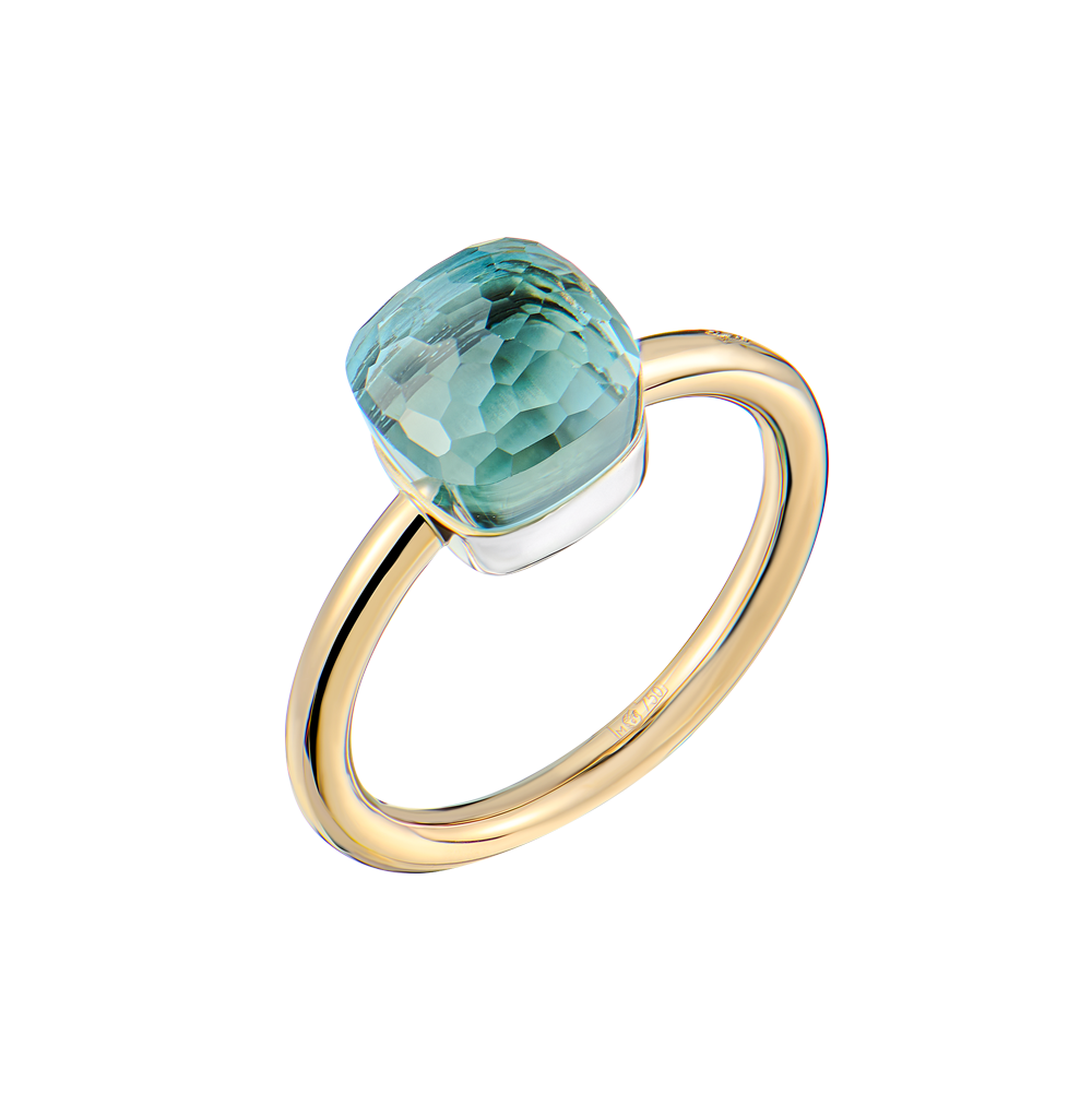 Кольцо Pomellato коллекции "Nudo" выполнены из розового золота 750 пробы с небесно-голубыми топазом общей массой 6,1 ct. Размер 16,75 (53). Вес - 5,68 гр.