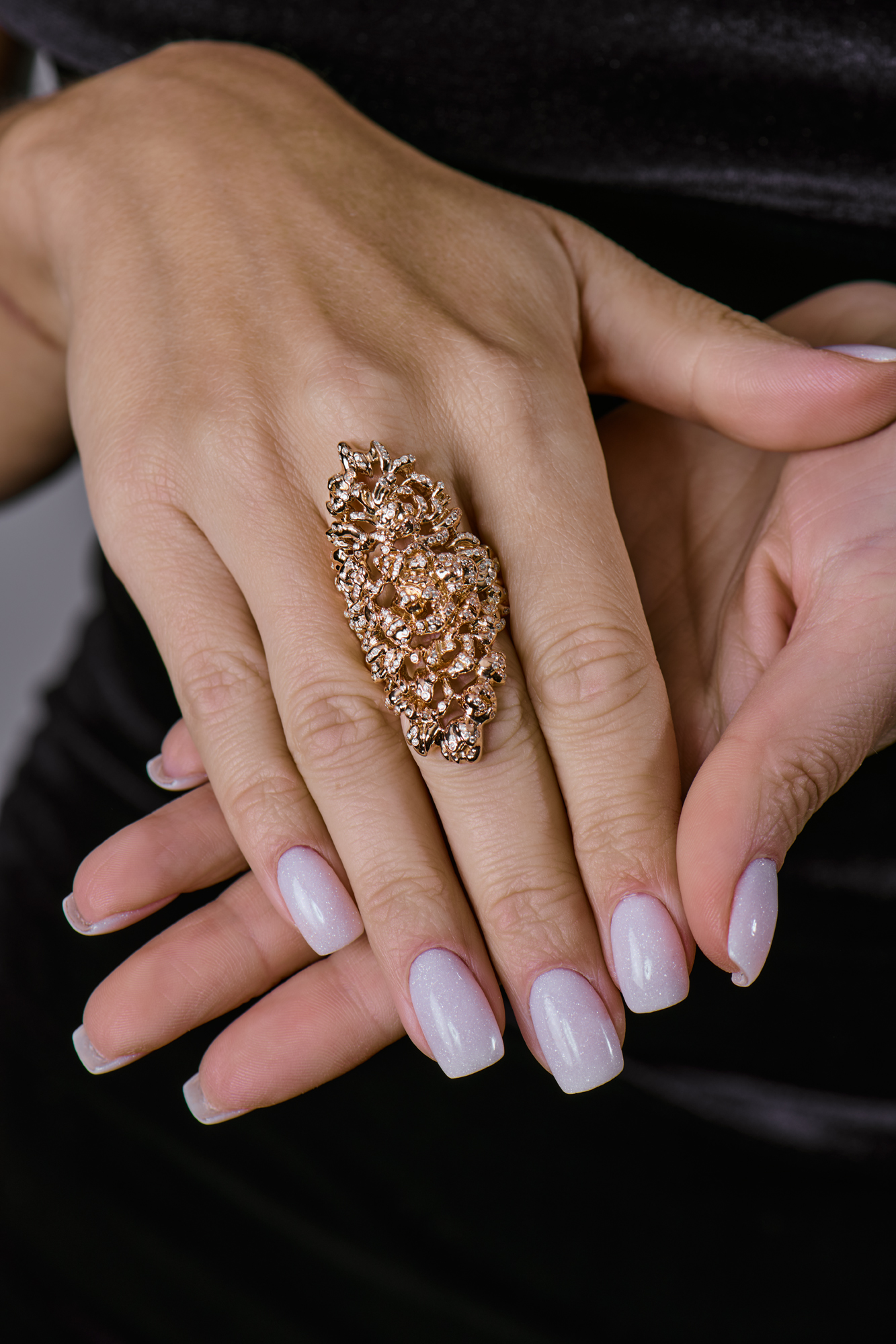 Винтажное кольцо REPOSSI коллекции "Nérée" выполненное из розового золото 750 пробы с паве из бриллиантов классической формы огранки общей массой 1,75 ct. Размер 16,75 (53). Длина кольца 5 см. Вес 22,72 гр.
