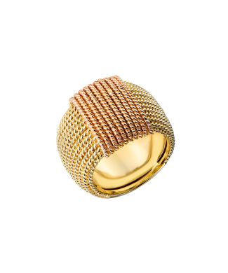 Кольцо Roberto Coin коллекции "Oro Classic" выполненное из желтого и розового золота 750 пробы с 1 рубином круглой формы огранки массой 0,025 ct. Ширина - 14,5 мм. Размер - 17,0 (54). Вес - 20,24 гр.
