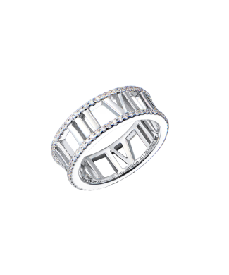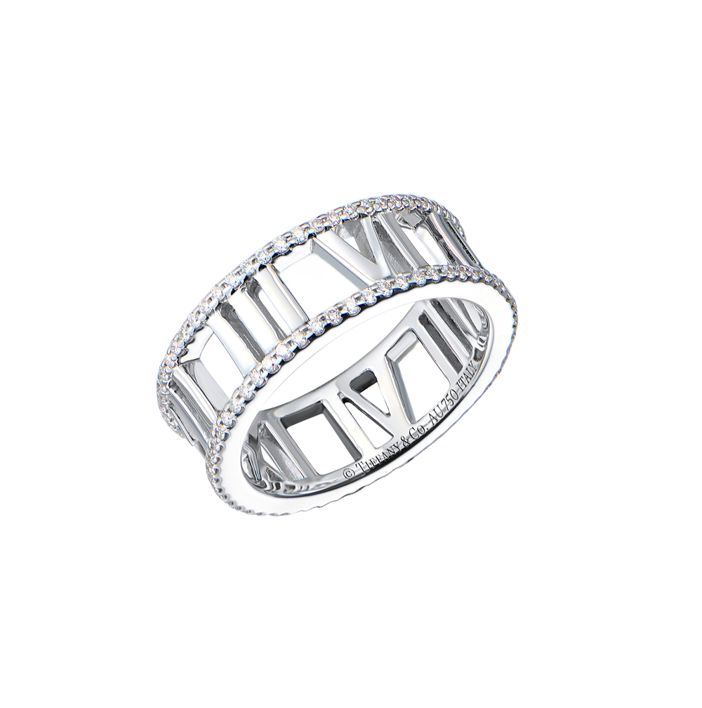Кольцо Tiffany & Co коллекции "Atlas" выполненное из белого золота 750 пробы с паве из классических бриллиантов общей массой 0,34 ct. Ширина кольца - 6,7 мм. Размер - 16,5 (52). Вес - 5,99 гр.