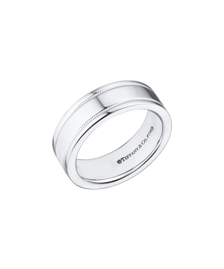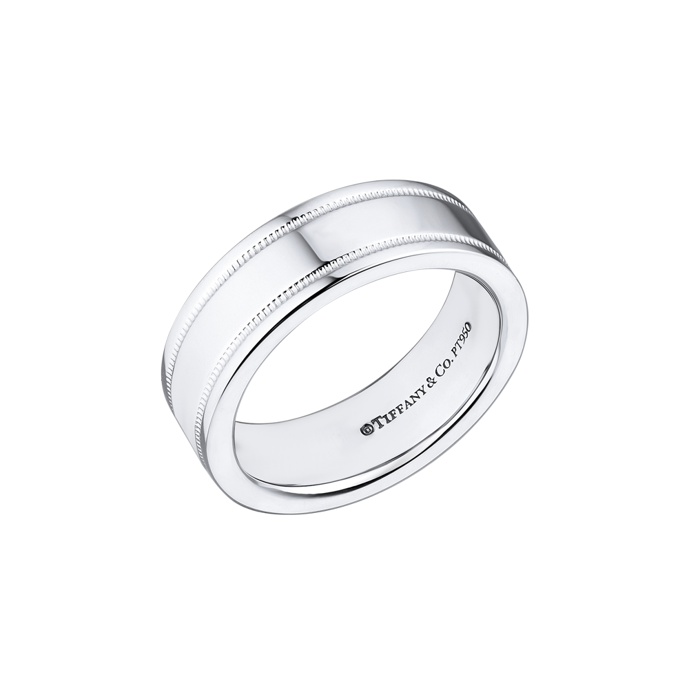 Кольцо Tiffany & Co коллекции "Tiffany Together" с двойным краем milgrain выполненное из платины 950 пробы. Ширина 5,5 мм. Размер 15,0 (48). Вес - 10,68 гр.
