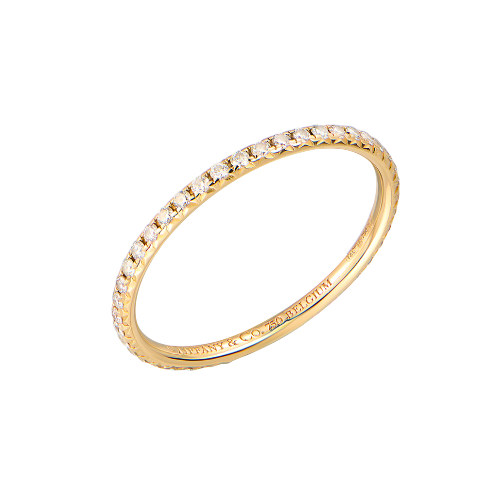 Кольцо Tiffany & Co коллекции "Metro" выполненное из желтого золота 750 пробы с 43 бриллиантами классической формы огранки общей массой 0,2 ct. Размер - 16,75 (53). Вес - 1,06 гр.