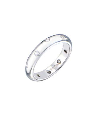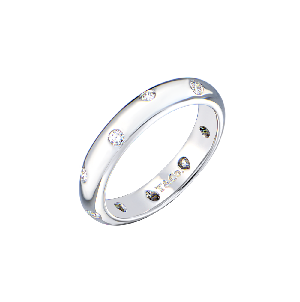 Кольцо Tiffany & Co коллекции "Etoile" выполненное из платины 950 пробы, шириной 4 мм, с бриллиантами классической формы огранки массой 0,22 ct. Размер кольца - 17,0 (54). Вес - 8,15 гр.